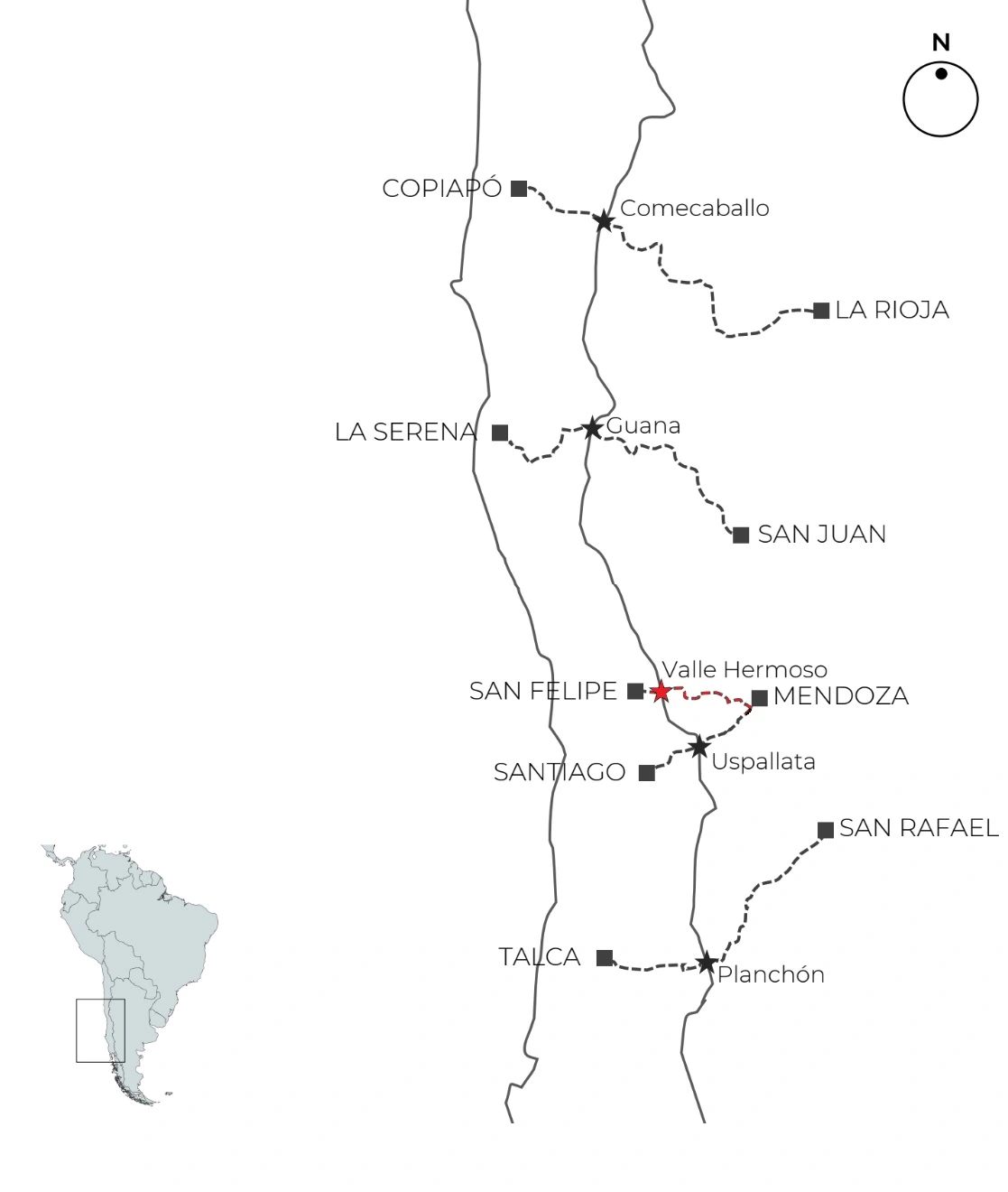• Desde Argentina, se toma en la provincia de La Rioja y, desde Chile, por la región de Atacama (Copiapó).